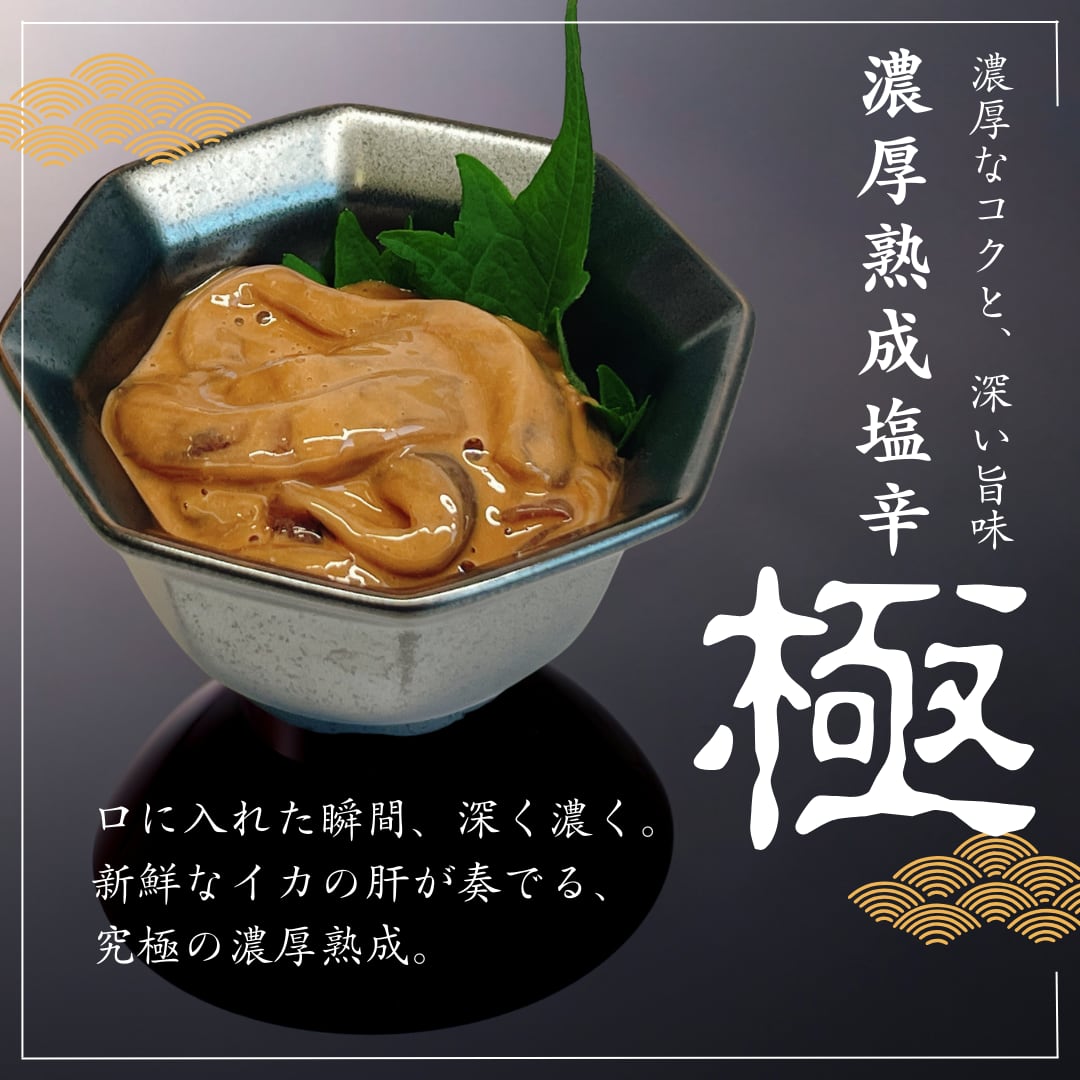 調味料に頼らず、鮮度の良いいかの肝(内臓)をたっぷり使用し、その旨味で味付けした濃厚なコクと深い旨味の塩辛です。