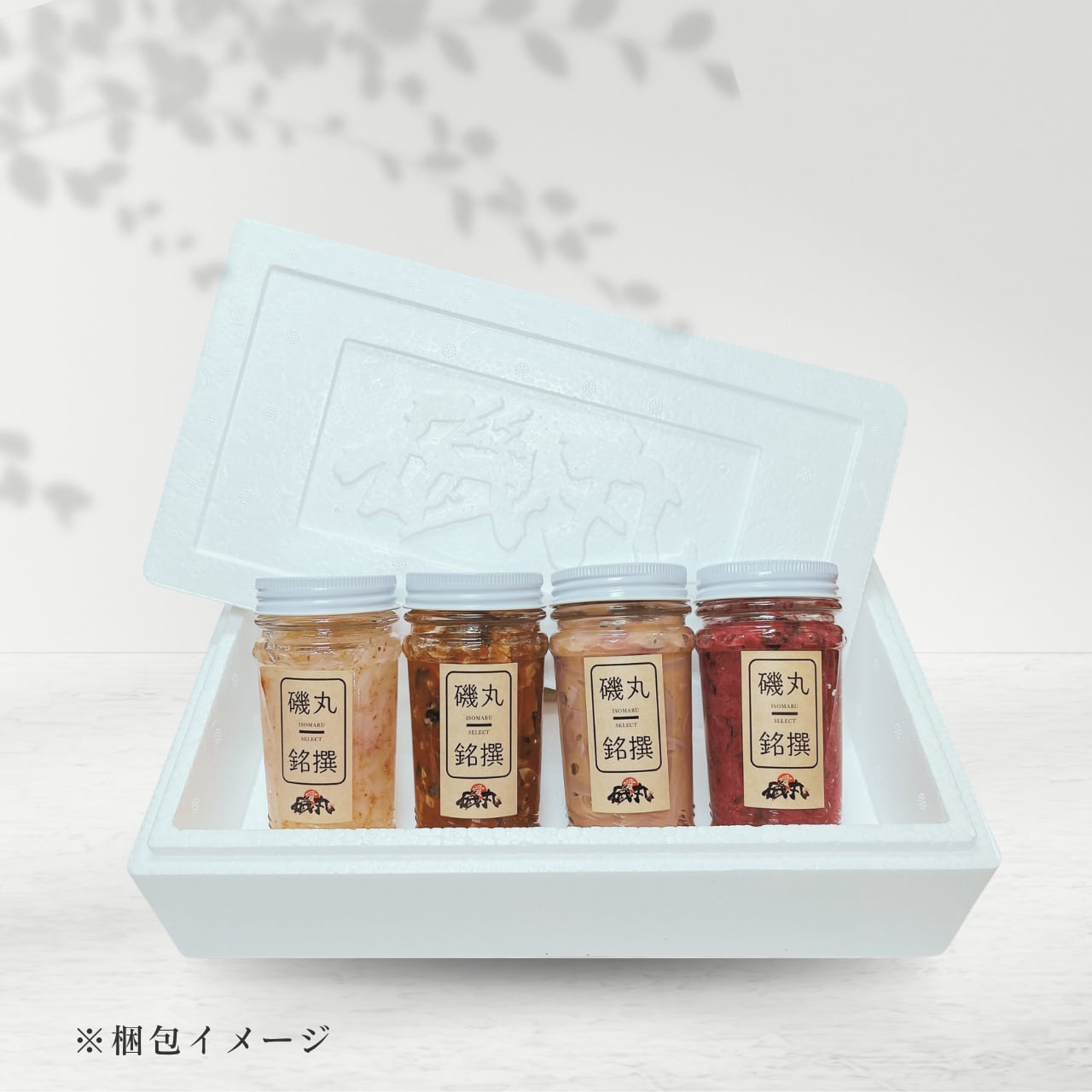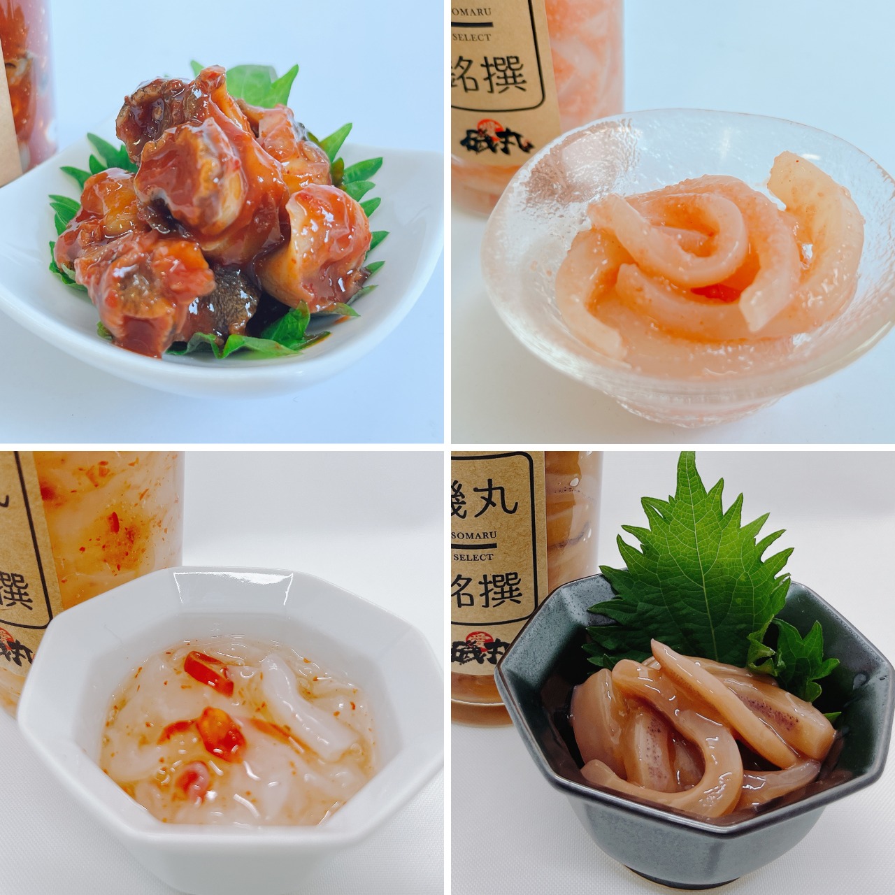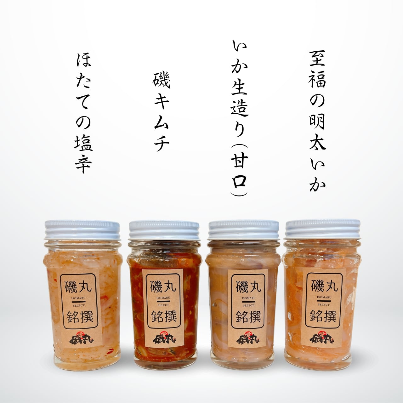 人気No1の『磯キムチ』が入った、ご飯もお酒もすすむ塩辛の詰め合わせ。
