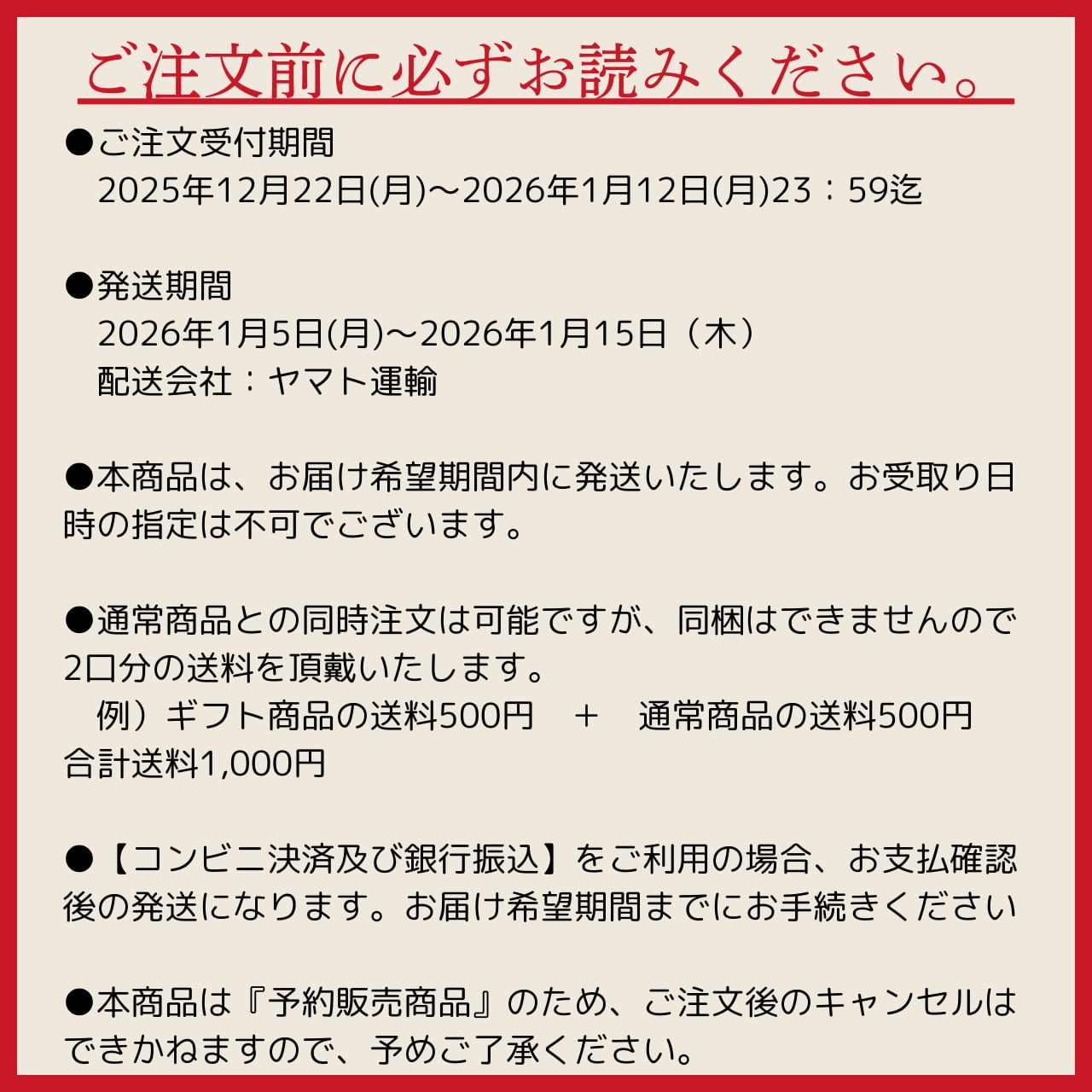 ●ご注文受付期間:2025年12月22日(月)~2026年1月12日(月)23:59迄